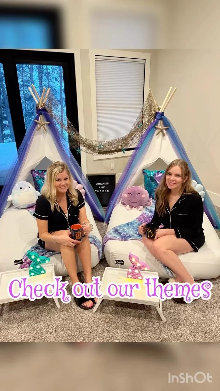 All of our themes include teepees, air mattresses, decorative pillows, blankets, trays, lights, and more fun decorations!